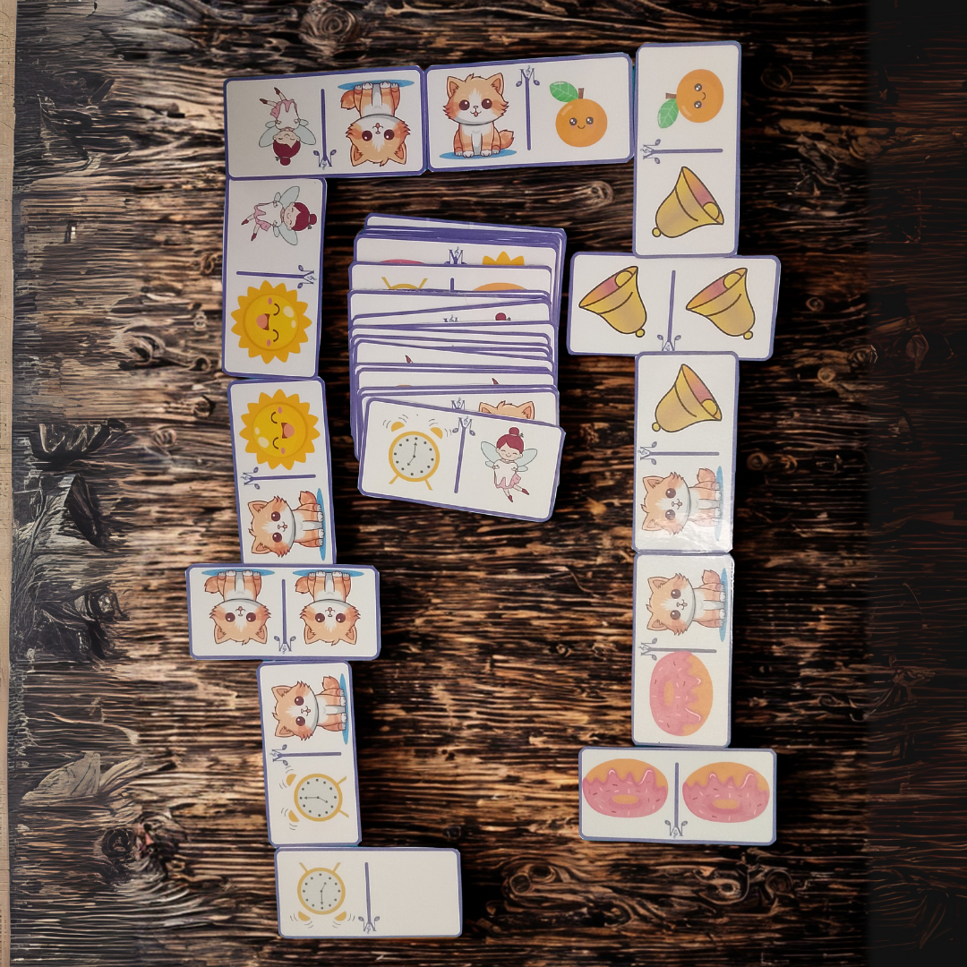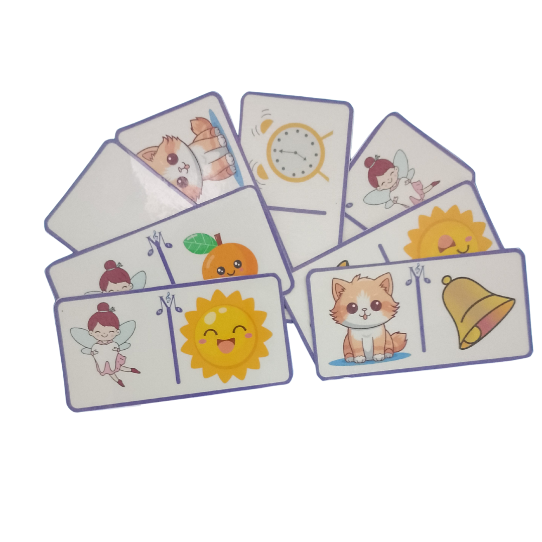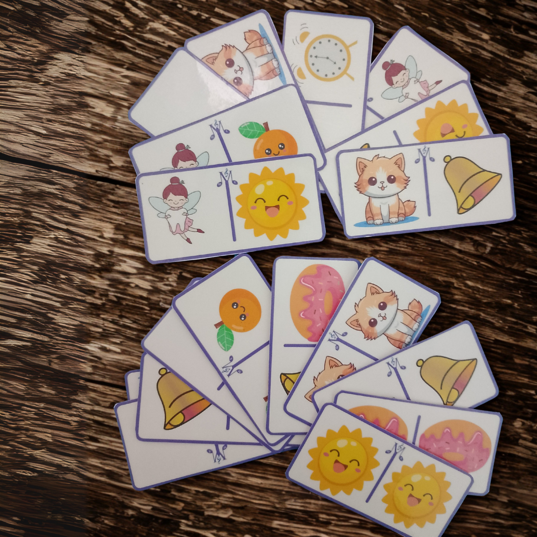 Dominó lúdico com desenhos que representam as 7 notas musicais.